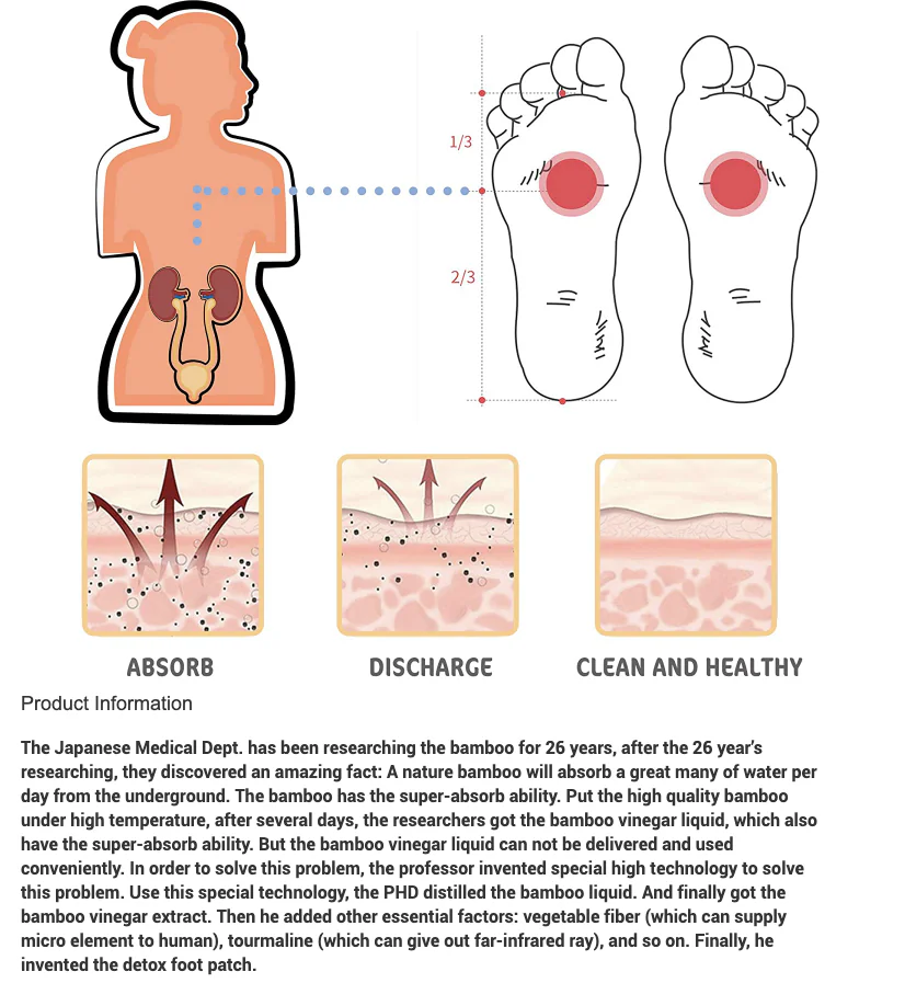 Das Prinzip der Detox Fusspflaster stammt aus der Traditionellen Chinesischen Medizin (TCM). Diese setzt ganz auf natürliche und pflanzliche Stoffe. Angereichert sind die Detox Fusspflaster mit einem Puderkissen aus verschiedenen pflanzlichen Inhaltsstoffen.